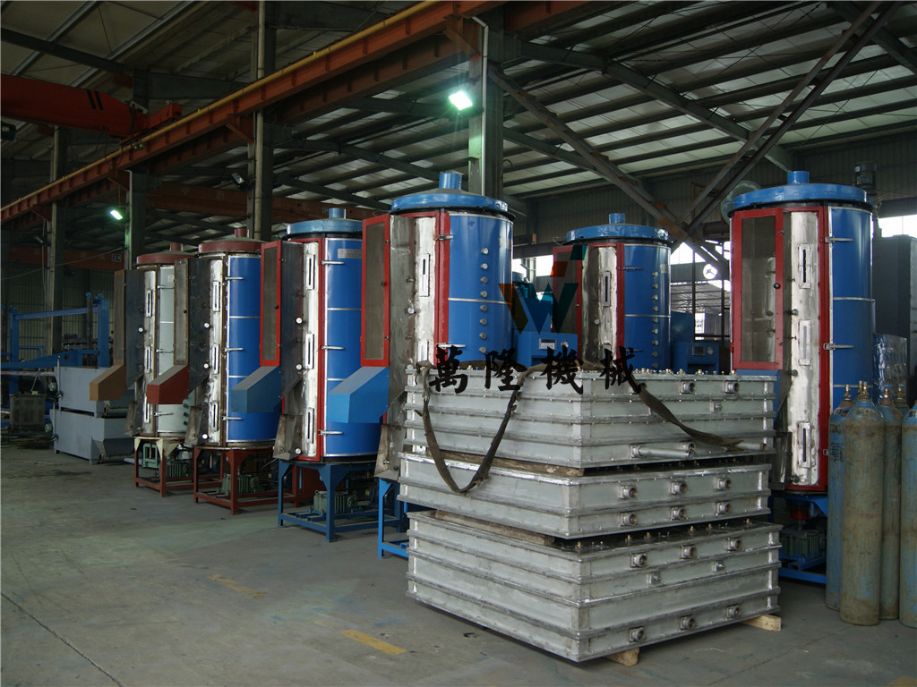3, 從入料,發泡,進入流化干燥床(客戶可選配),再通過風機輸送裝置,進入熟化料倉,完成珠粒發泡的自動循環過程。發泡密度可達5-30g/L,(即5-30公斤每立方米).